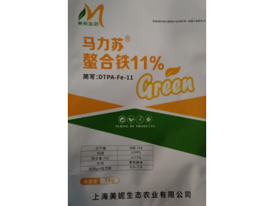 DTPA-Fe-11是由铁离子和具有强络合性的DTPA螯合剂络合而成,化学性能稳定,不易被氧化或还原,不论硬水或冷水均可快速完全溶解,易被作物吸收利用,适宜于酸性、中性土壤或溶液,为作物提供铁元素,有效预防缺铁引起的黄化症、顶枯、梢枯等症状。