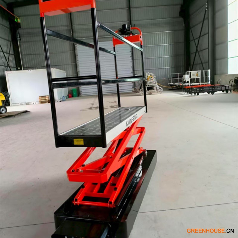 玻璃温室小番茄智能升降采摘车能实现快速的升降,且作业安全。机身采用电动底盘与液压剪叉式升降平台机构相结合,平衡安全报警等功能,且设备体积小,噪音低,实现无极调速