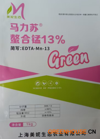 锰是叶绿体的结构成分,参与光合作用、水的光解等,同时锰是多种酶的活化剂,对蓝莓呼吸、蛋白质的合成与水解、硝态氮的还原起到重要作用。螯合锰纯度高、易溶于水,预防蓝莓因缺锰引起的幼叶叶脉间失绿并出现坏死斑点等症状。