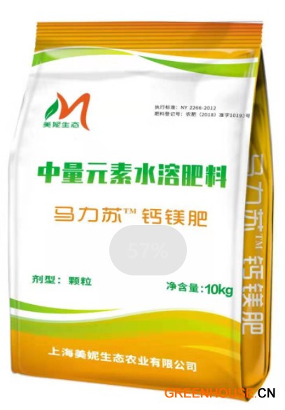 - 完全水溶,是一种新型高效的钙镁肥,含有2.0%的镁和11.0%的钙。