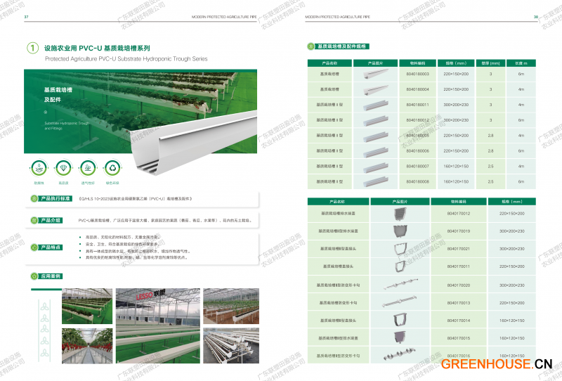 在设施农业无土栽培(基质栽培)中,PVC-U基质栽培槽,是一种用于承载固定栽培基质的一种管材。采用未增塑硬质聚氯乙烯(PVC-U)制造,适用于椰糠、岩棉、珍珠岩等固体基质的作物种植。其结构设计兼顾抗压性、排水效率与根系环境优化,广泛应用于温室大棚、家庭园艺的果蔬(番茄、青瓜、水果等)、花卉的无土栽培。
